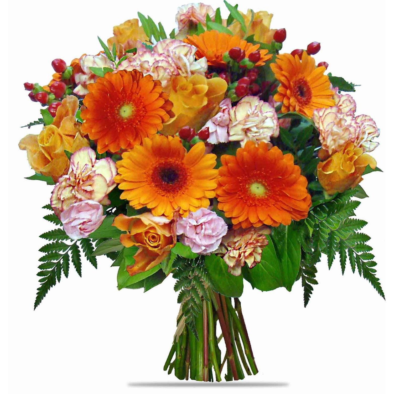 Standard Roses, Mini Gerberas, Carnations, Hypericum & Decorative greenery (11 stems)