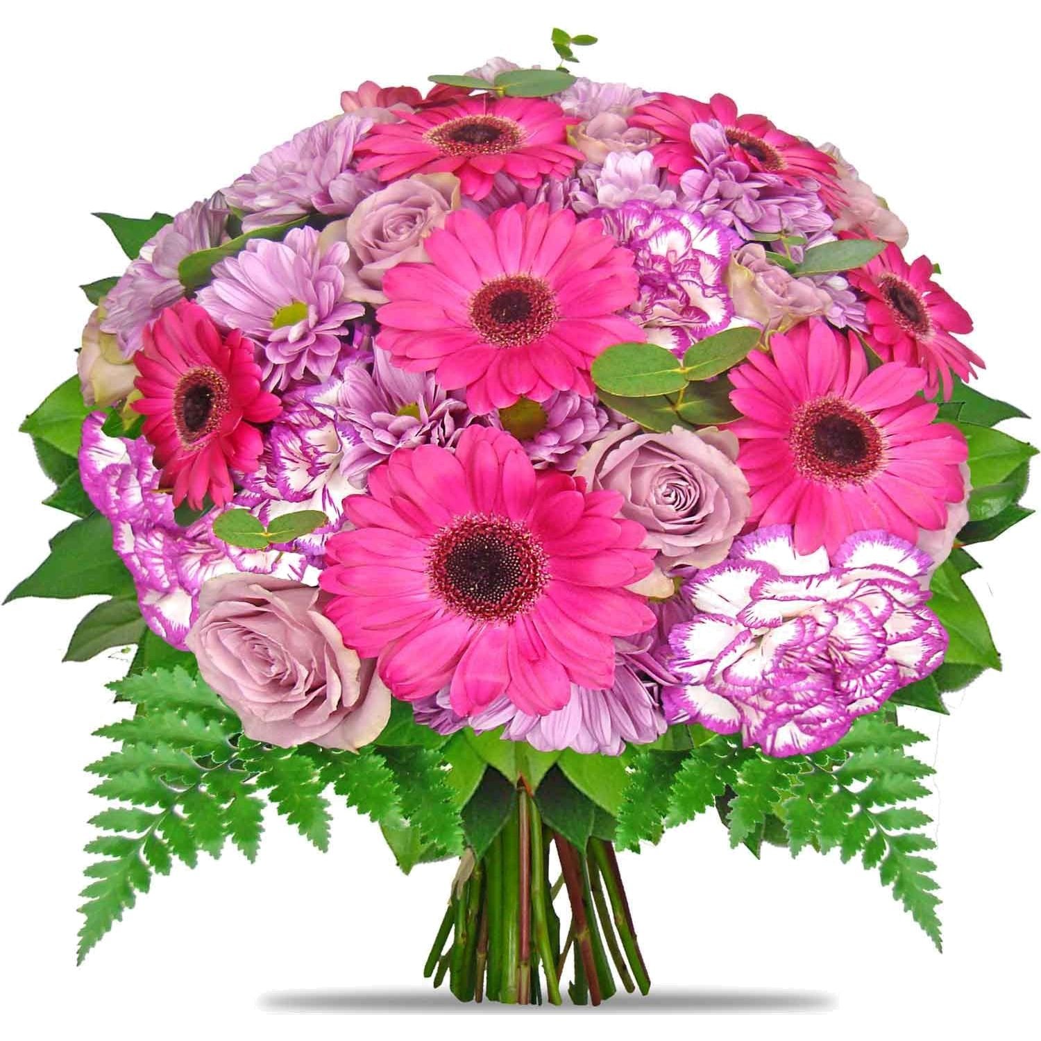 Roses, Mini Gerberas, Carnations, Chrysanthemums & Decorative greenery (19 stems)