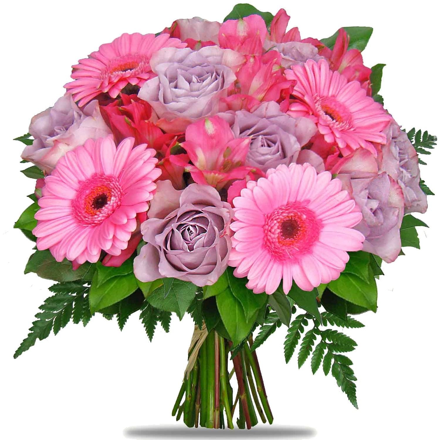Mini Gerberas, Roses, Alstroemerias & Decorative greenery (13 stems)