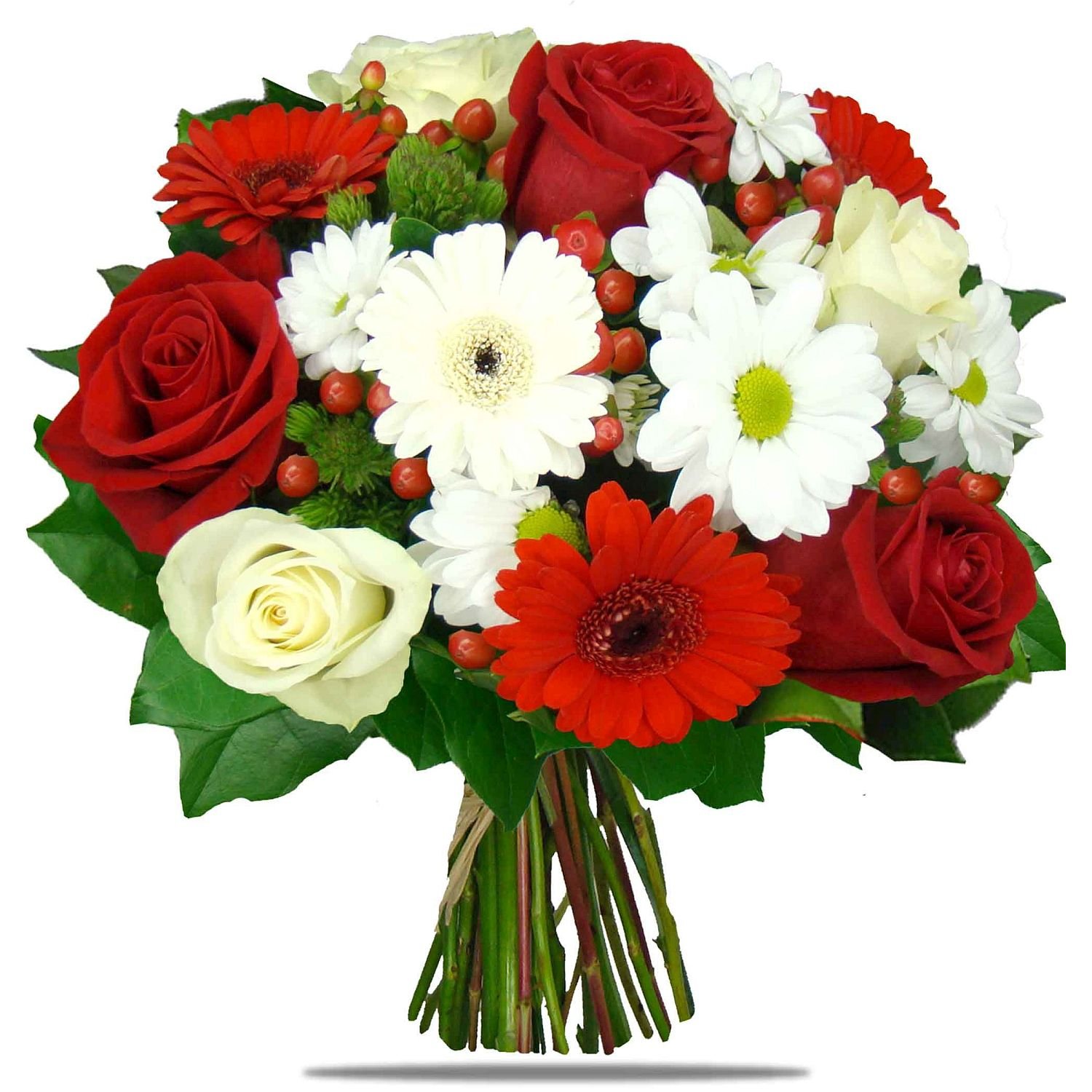 Standard Roses, Mini Gerberas, Chrysanthemums, Hypericum & Decorative greenery (10 stems)