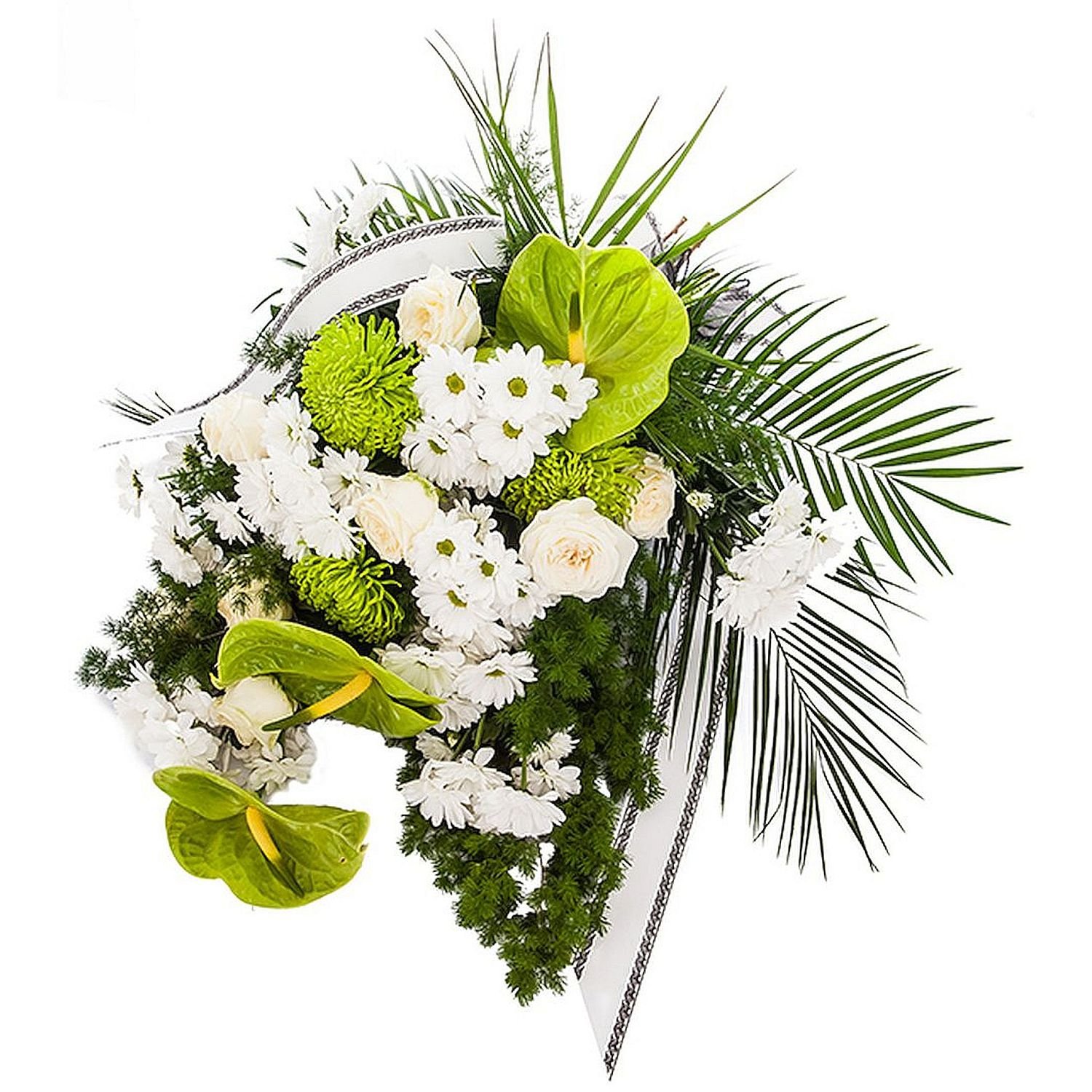 Large Anthuriums, Single Bloom Chrysanthemums, Chrysanthemums, Roses & Decorative greenery (26 stems)