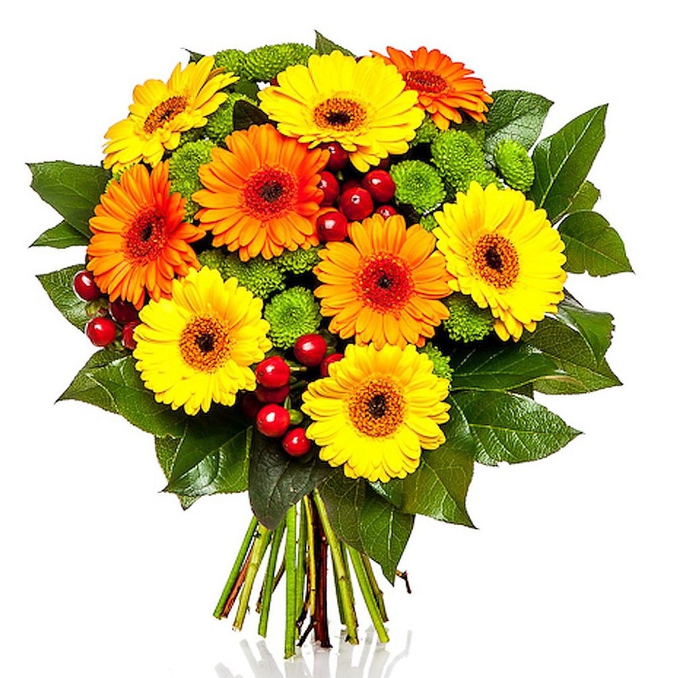 Mini Gerberas, Santini Chrysanthemums, Hypericum & Decorative greenery (13 stems)