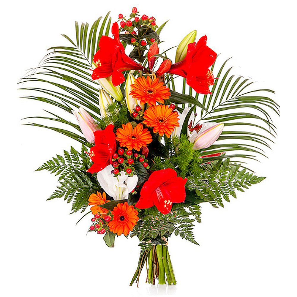 Large Amarillos, Stargazer Lilies, Mini Gerberas, Hypericum & Decorative greenery (14 stems)