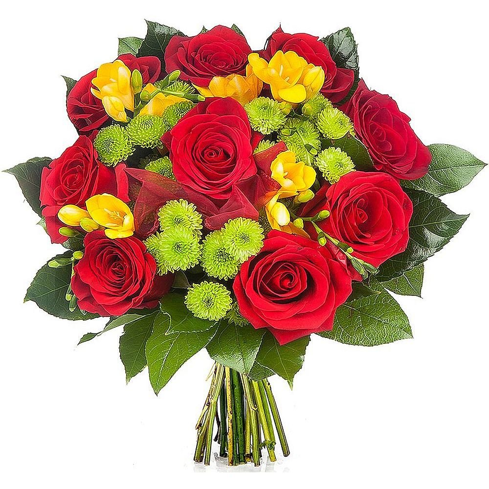 Large Roses, Freesias, Santini Chrysanthemums & Decorative greenery (15 stems)