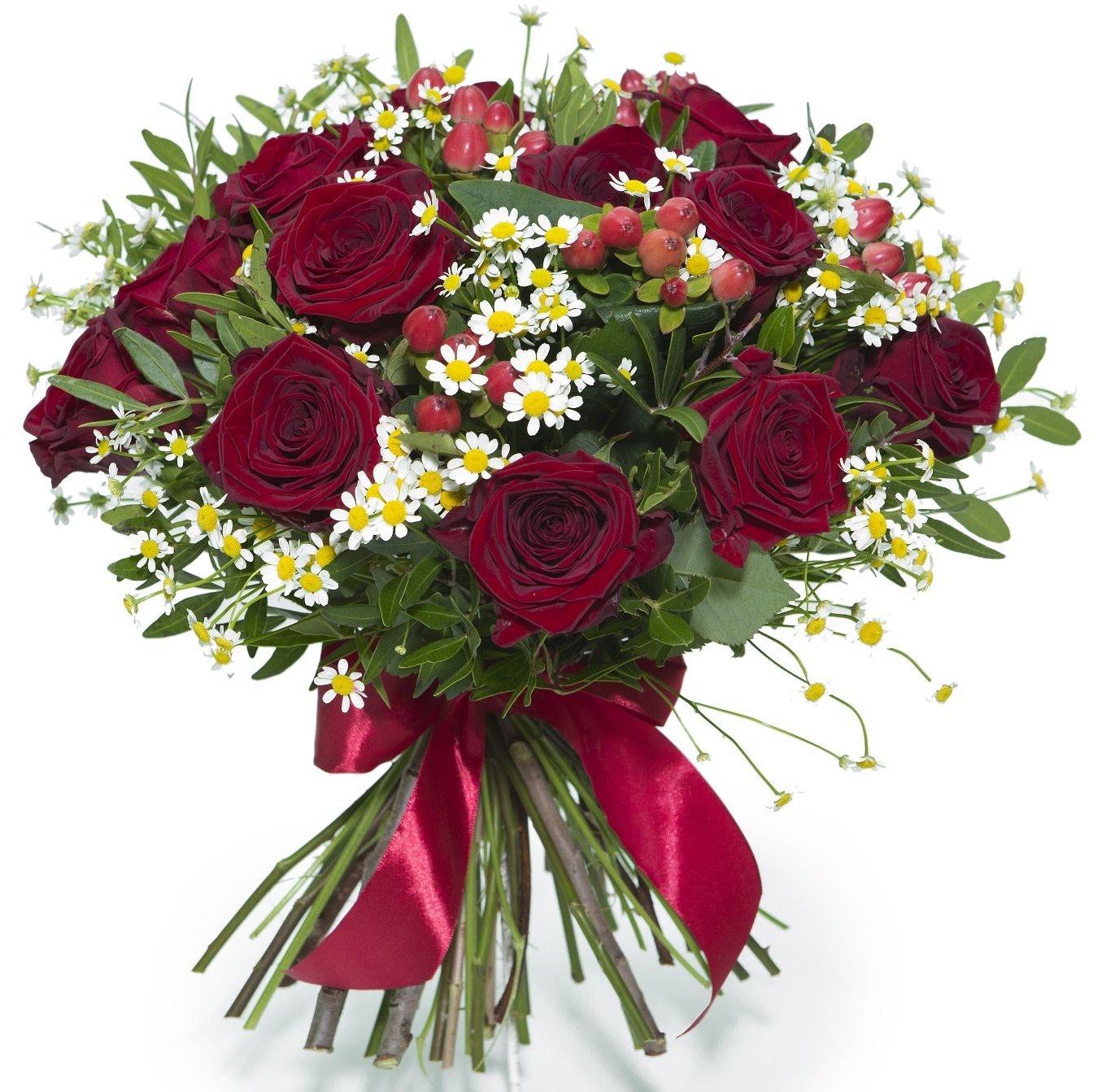 Large Roses, Hypericum, Camomile, Decorative bow & Decorative greenery (20 stems)