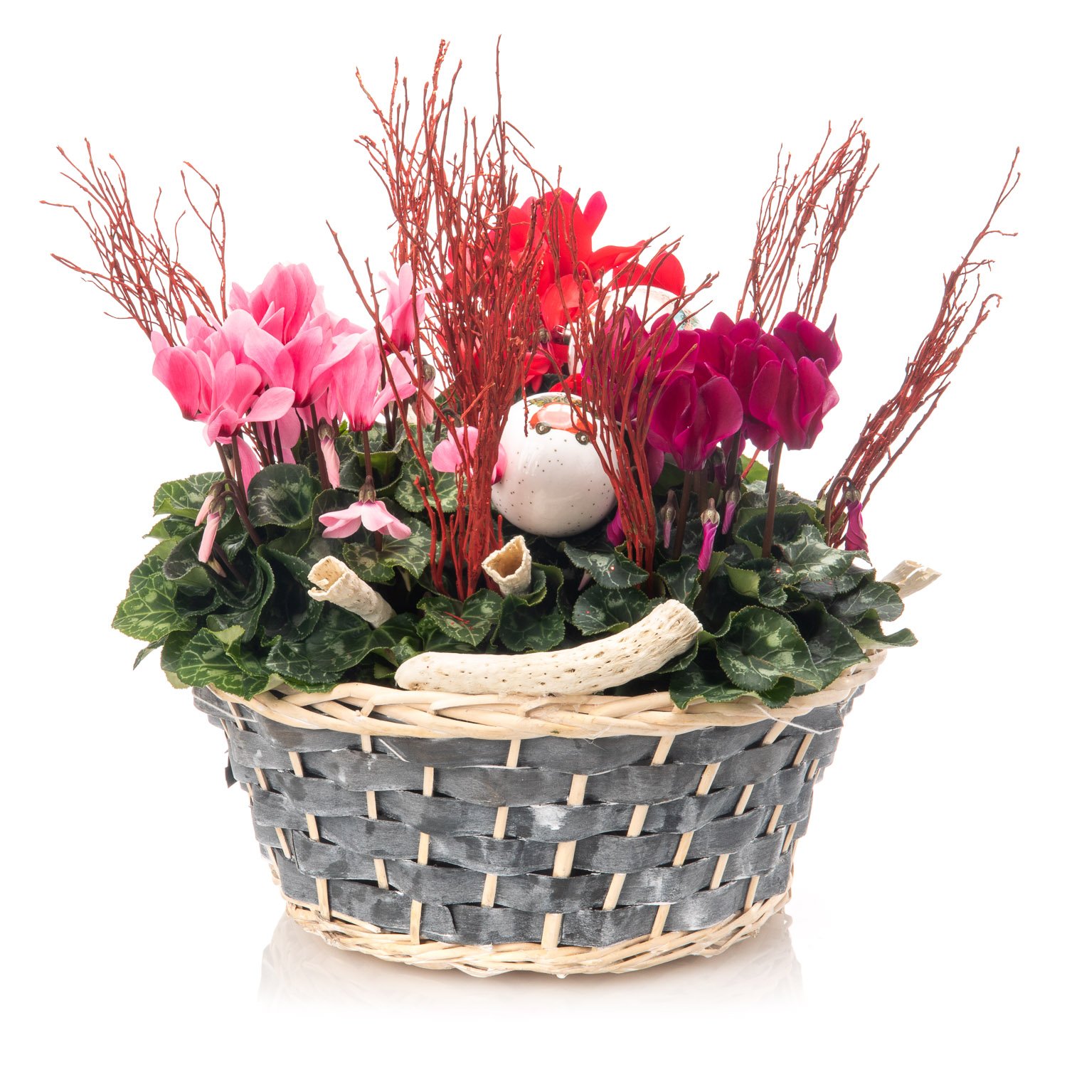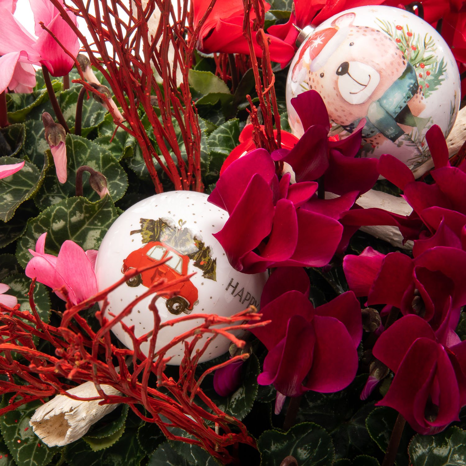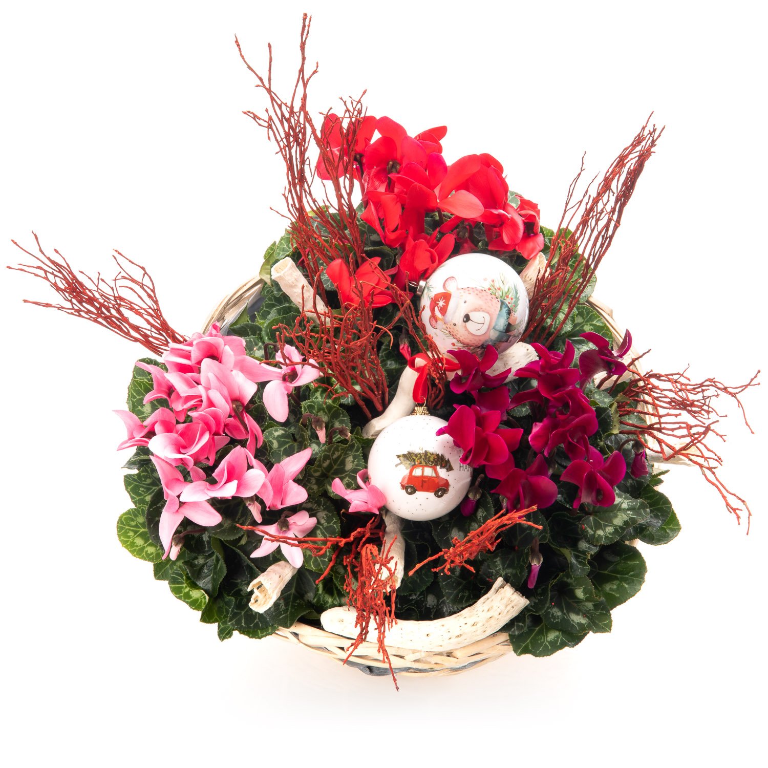 Cyklamen, Basket, Christmas decorations & Decorative greenery (7 stems)
