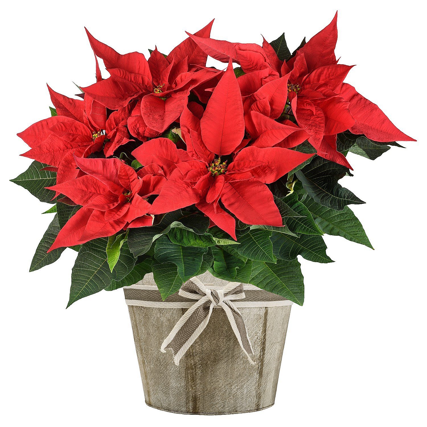 Poinsettia, Ceramic container, Decorative bow (3 stems)
