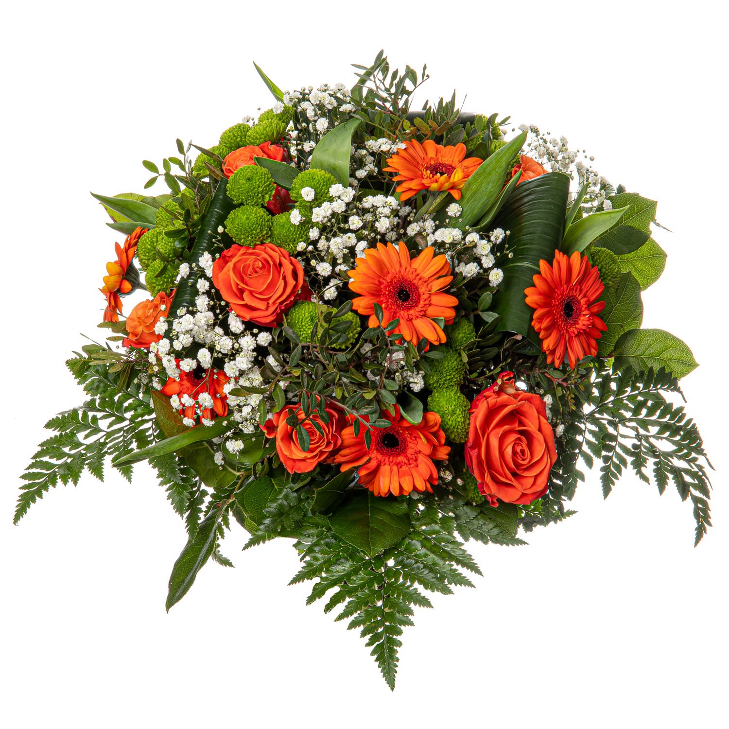 Standard Roses, Mini Gerberas, Santini Chrysanthemums, Gypsophila & Decorative greenery (12 stems)