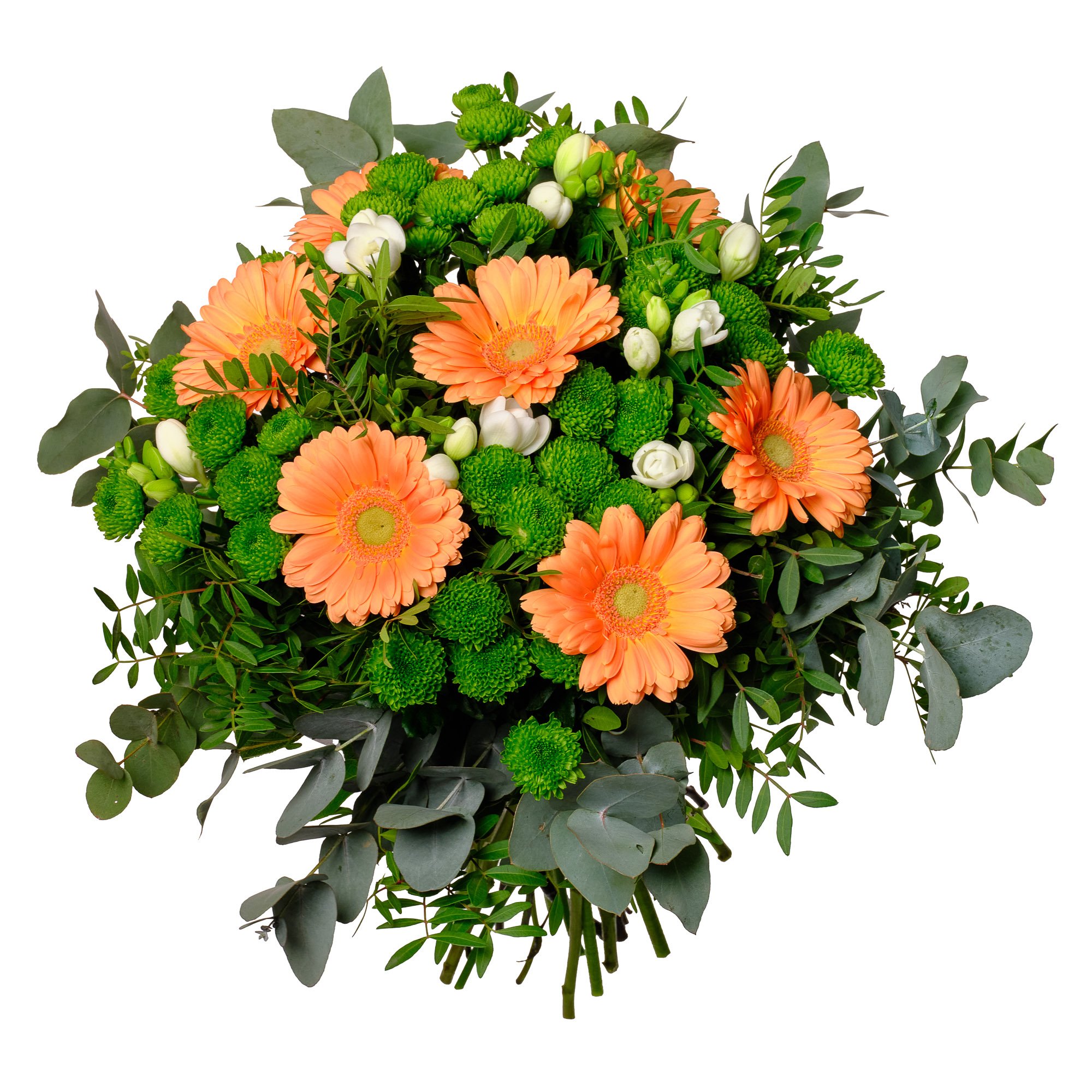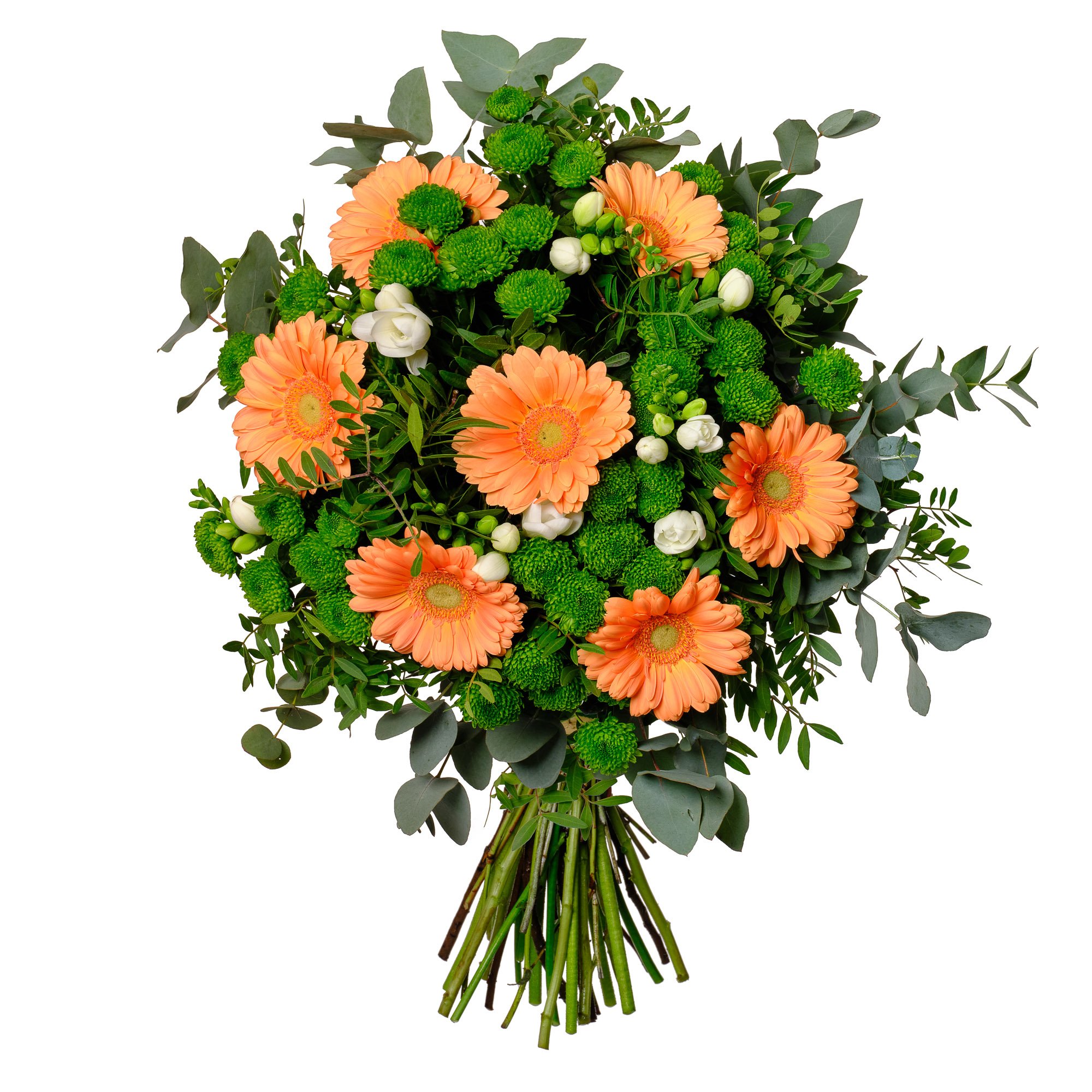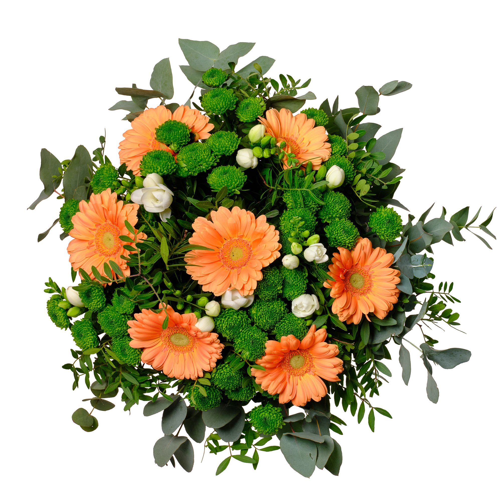 Mini Gerberas, Freesias, Chrysanthemums & Decorative greenery (15 stems)