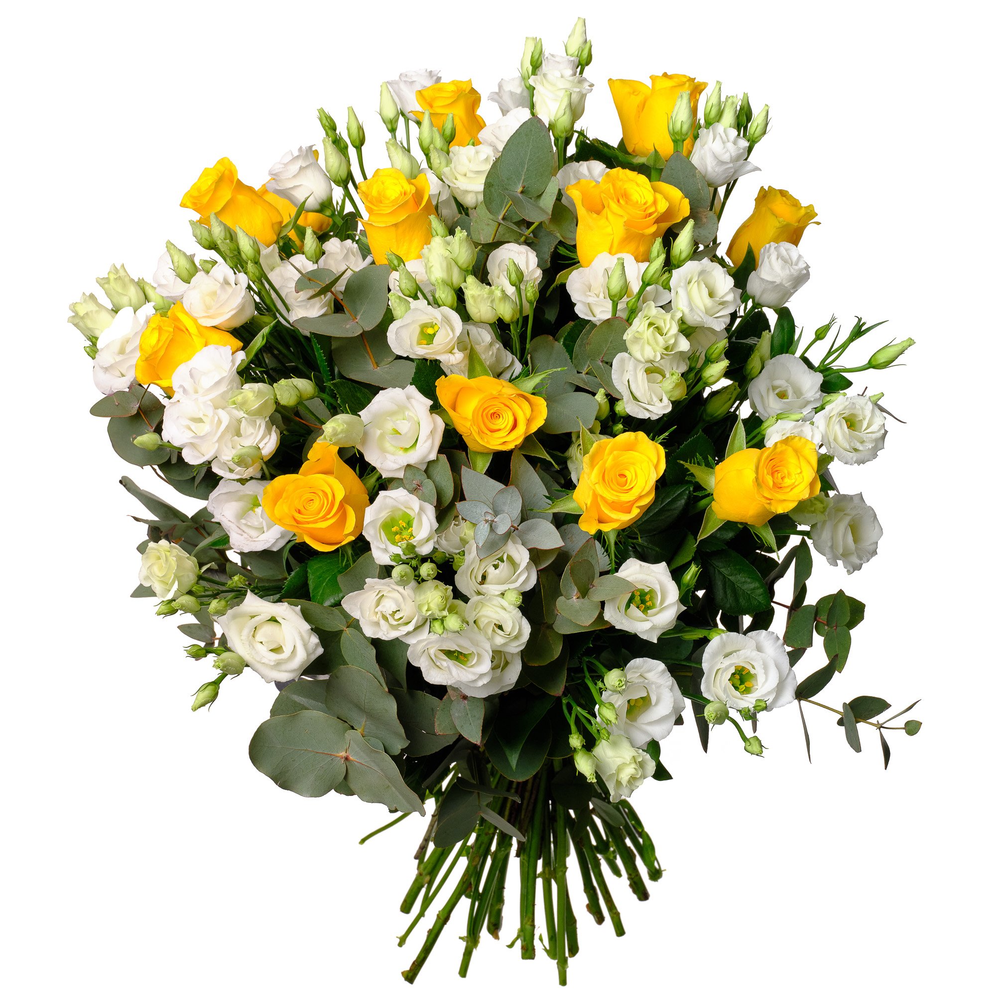 Lisianthus, Roses and dekorative green fillers (21 stems)