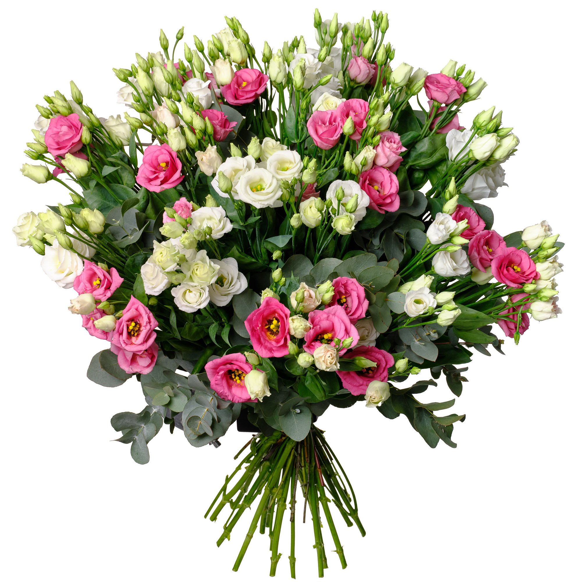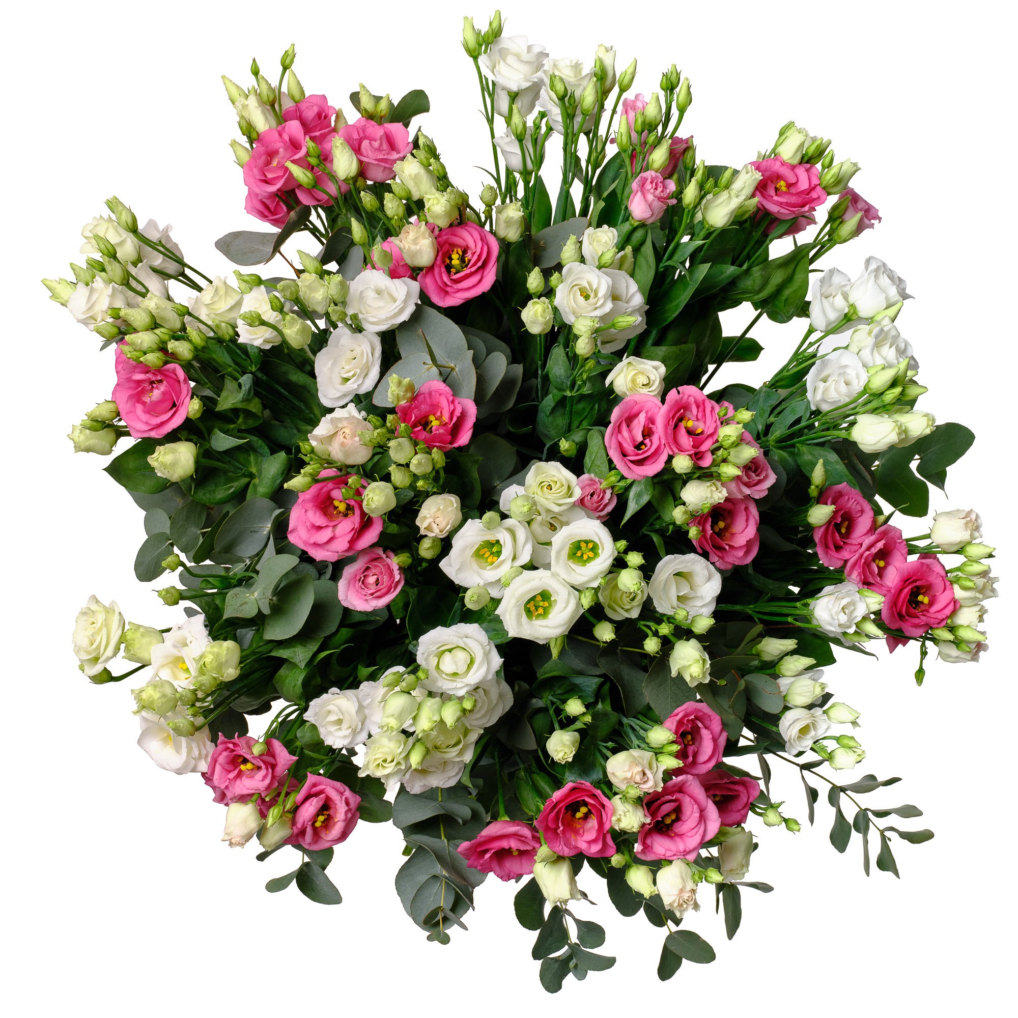 White Lisianthus, Pink Lisianthus and green fillers (14 stems)