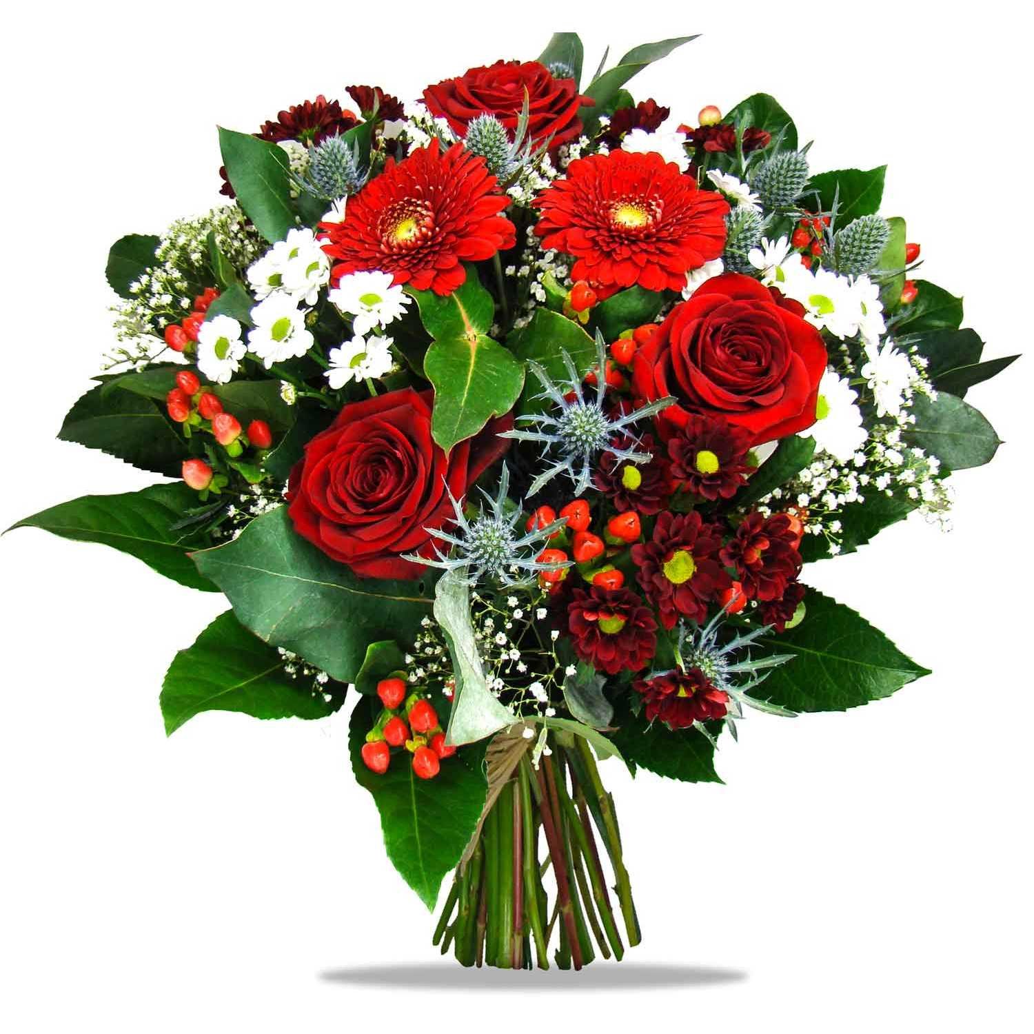 | Exclusive | Roses, Chrysanthemums, Chrysanthemums, Mini Gerberas, Eryngos, Hypericum, Gypsophila & Decorative greenery (31 stems) |