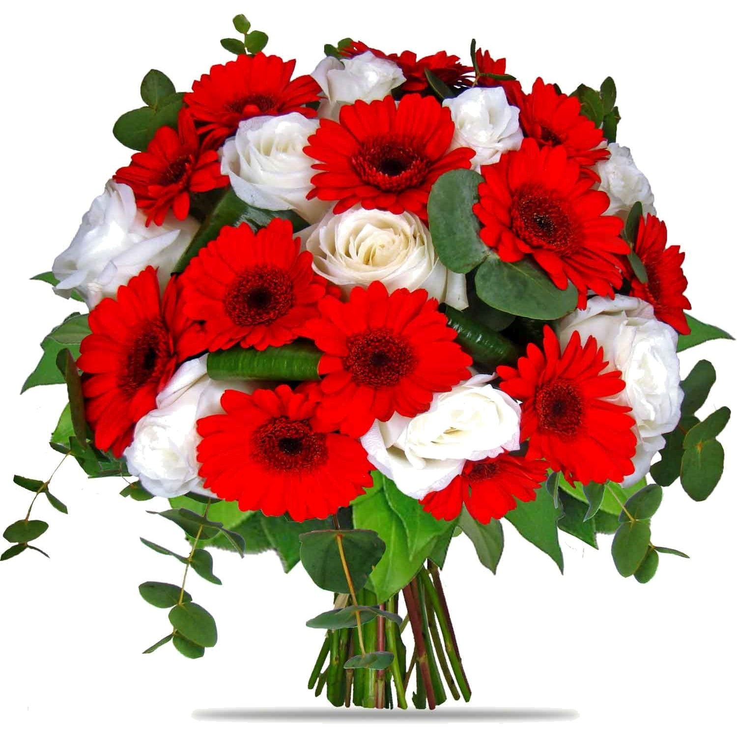 Roses, Mini Gerberas, Eucalyptus & Decorative greenery (14 stems)