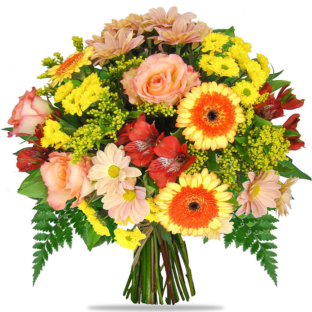 | Exclusive | Chrysanthemums, Roses, Alstroemerias, Mini Gerberas, Goldenrods & Decorative greenery (32 stems) |