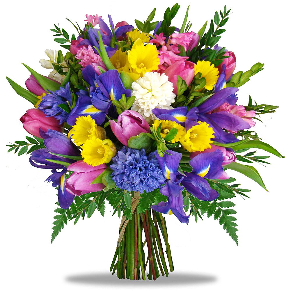 | Standardní | 3 ks iris, 3 ks narcis, 4 ks tulipán, 3 ks hyacint a dekorativní zeleň |