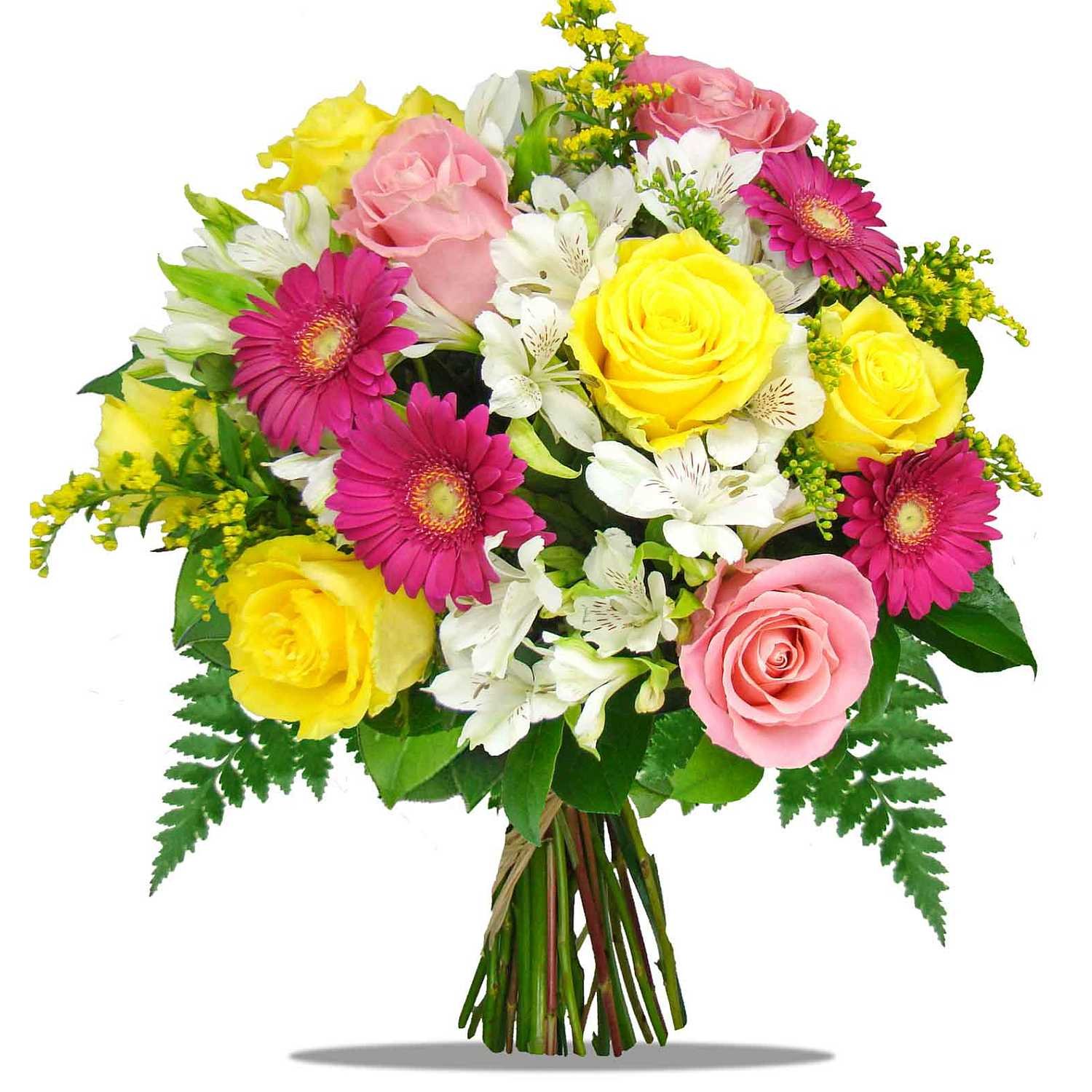 Standardní 5 ks růže, 3 ks germína, 2 ks alstromérie, 3 ks solidago a dekorativní zeleň